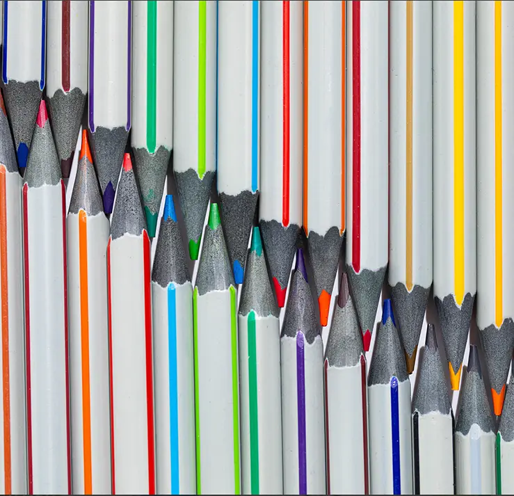 Ergonomic triangular colored pencils designed for comfortable grip, making them ideal for schools and long drawing sessions. Produced in premium colored leads with sleek grey or striped finishes, suitable for educational and retail markets.