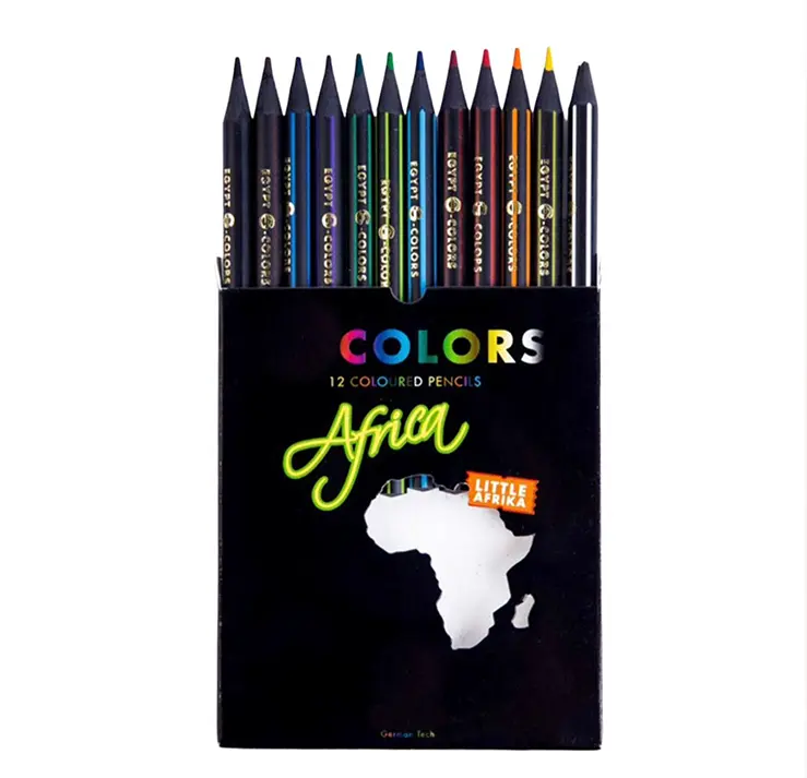 A collection of round colored pencils in large and small formats, designed for versatility. The XL line offers jumbo pencils for younger kids and beginners, while the Africa line delivers bold, stylish black-striped pencils for an artistic appeal. Both are perfect for school kits, promotional packs, and retail displays.