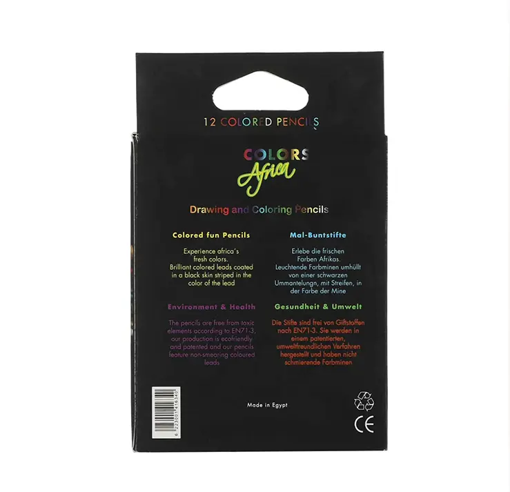 A collection of round colored pencils in large and small formats, designed for versatility. The XL line offers jumbo pencils for younger kids and beginners, while the Africa line delivers bold, stylish black-striped pencils for an artistic appeal. Both are perfect for school kits, promotional packs, and retail displays.
